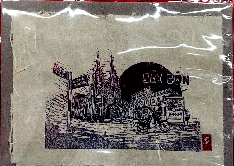 Woodcut Print: Hello Saigon